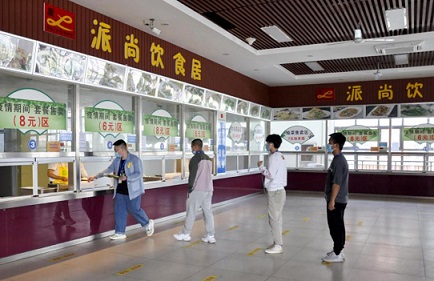 在班上,班主任每日登記到班人數(shù),執(zhí)行晨午晚“三檢”制度;在食堂,學生采取輪流錯峰方式,分段、錯時就餐。