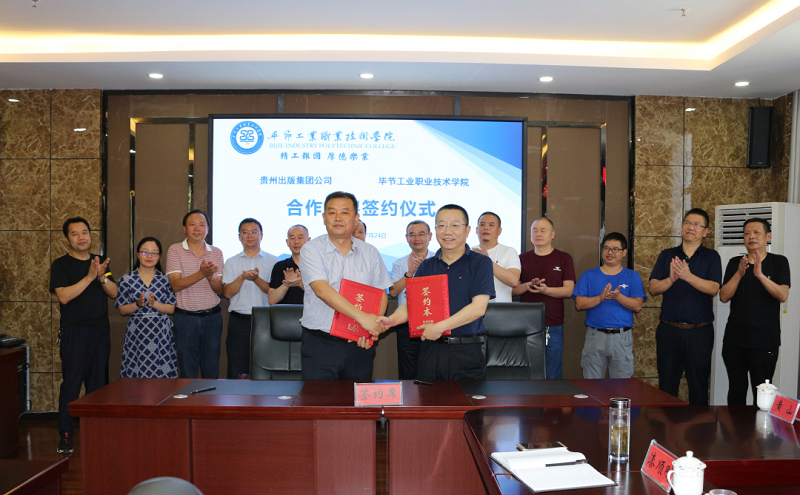 7月24日早上,我院與貴州出版集團(tuán)公司在同心樓三樓會(huì)議室舉行合作框架協(xié)議簽約儀式。貴州出版集團(tuán)公司黨委副書記常勇,貴州省新華書店有限公司黨委副書記、總經(jīng)理李健,畢節(jié)市新華書店有限公司總經(jīng)理王健,六盤水市新華書店有限公司總經(jīng)理鐘子杰,畢節(jié)工業(yè)職業(yè)技術(shù)學(xué)院黨委副書記、院長(zhǎng)邱國(guó)援,黨委副書記付善華,黨委委員、副院長(zhǎng)吳家文,黃河,黃文碧及相關(guān)部門負(fù)責(zé)人出席儀式。簽約儀式由吳家文主持。
