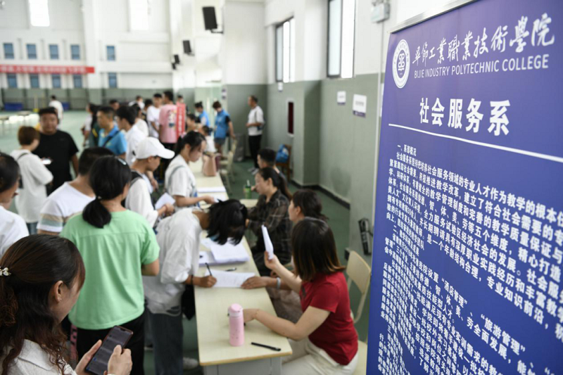 (畢節(jié)工業(yè)職業(yè)技術(shù)學院黨委書記李涌到報名點了解新生入學情況)