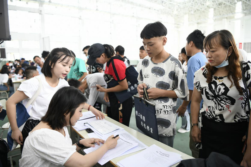 (前來參加報名的新生絡(luò)繹不絕)