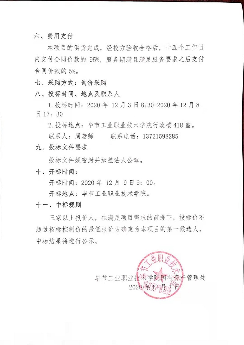 畢節(jié)工業(yè)職業(yè)技術(shù)學院監(jiān)控維修采購項目中標公告