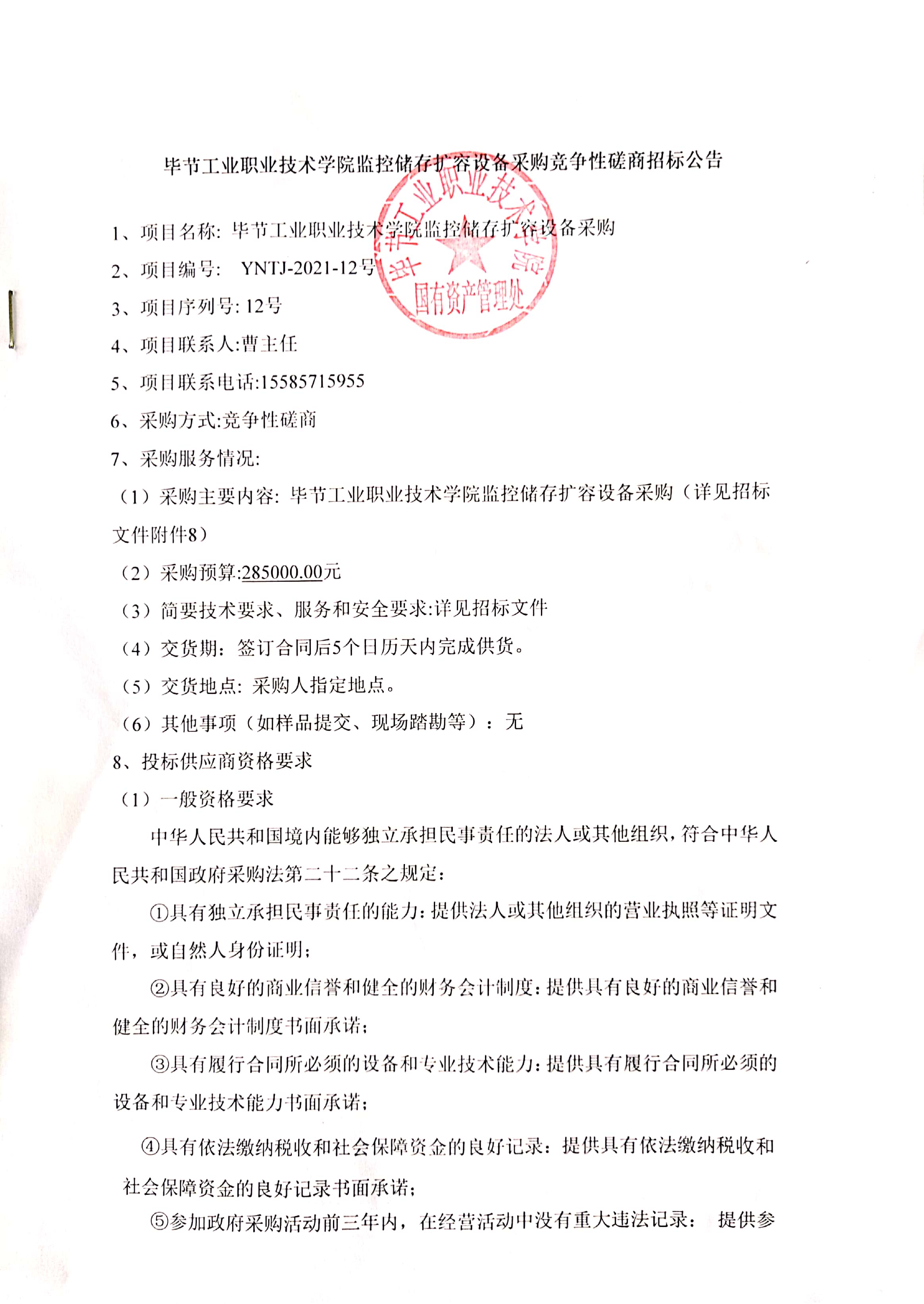 畢節(jié)工業(yè)職業(yè)技術學院監(jiān)控儲存擴容設備采購競爭性磋商招標公告