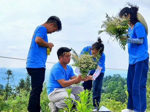 ▲實(shí)踐隊(duì)員親手采集鮮花,哀思革命先烈