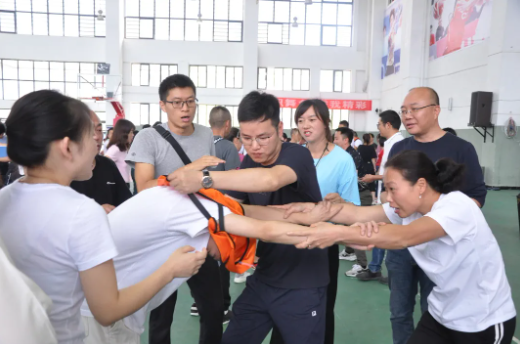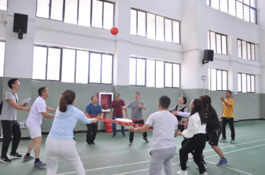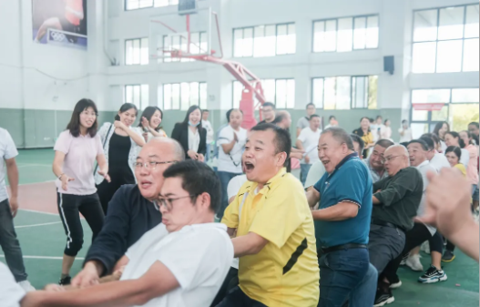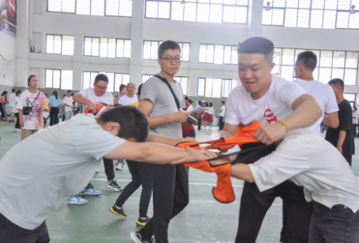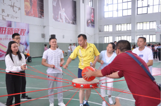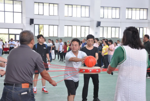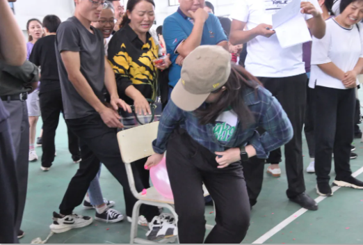 活動(dòng)共設(shè)置了連環(huán)穿衣、同心鼓、坐爆氣球和拔河四個(gè)項(xiàng)目,參與教師分為八個(gè)小組進(jìn)行比拼。現(xiàn)場(chǎng)笑聲不斷,充滿了熱鬧的氣氛,歡呼聲、加油聲、吶喊聲此起彼伏。