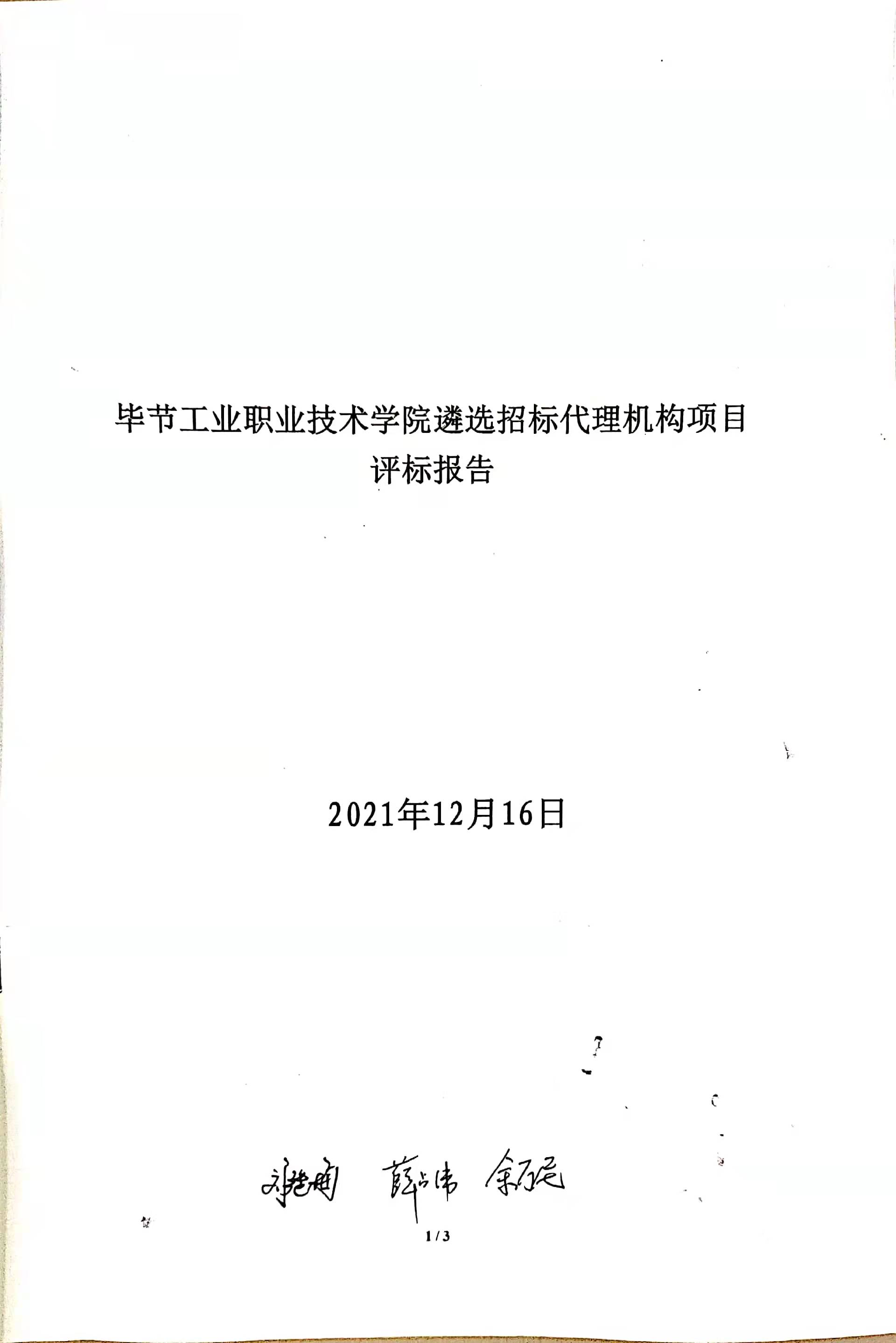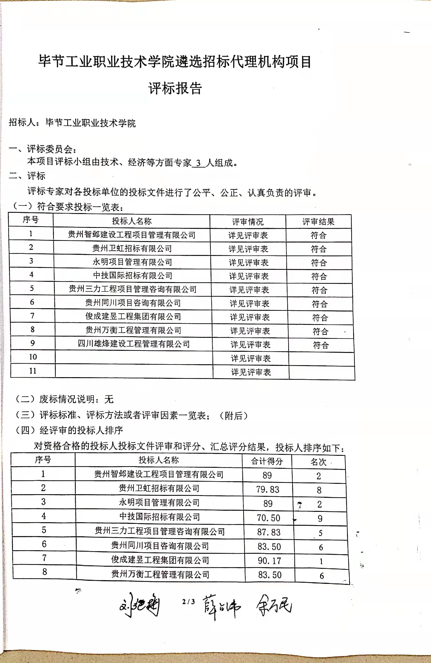 畢節(jié)工業(yè)職業(yè)技術(shù)學(xué)院遴選招標(biāo)代理機(jī)構(gòu)項(xiàng)目評(píng)標(biāo)報(bào)告