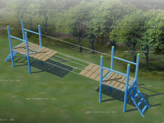 高空拓展架在設置原理上將拓展器材的操作平臺設置在8-12米的高空,參訓者借助高空拓展架在教練的指導下完成跨越、攀爬等一系列動作,從而達到克服恐懼、重新認識自我、戰(zhàn)勝自我、學會抓住機會的訓練目的。拓展訓練中的高空拓展架,目的是對人的心理在高空環(huán)境下的一種沖擊,讓個體樹立自我挑戰(zhàn)的信心。