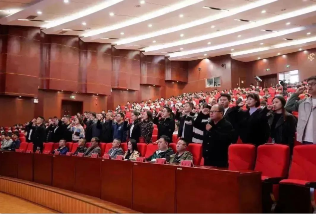 會議在雄壯的國歌聲中拉開帷幕,會上,出席領導為21名輔導員和54名助理輔導員頒發(fā)了聘任證書,21名輔導員進行了集體宣誓。助理輔導員代表張莉,輔導員代表付琴分別作交流發(fā)言。