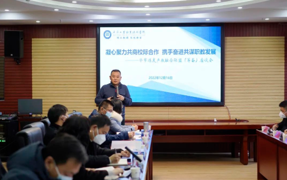 畢節(jié)市中華職業(yè)教育社專職副主任夏青對(duì)成立畢節(jié)煤炭產(chǎn)教融合聯(lián)盟作指導(dǎo)講話。