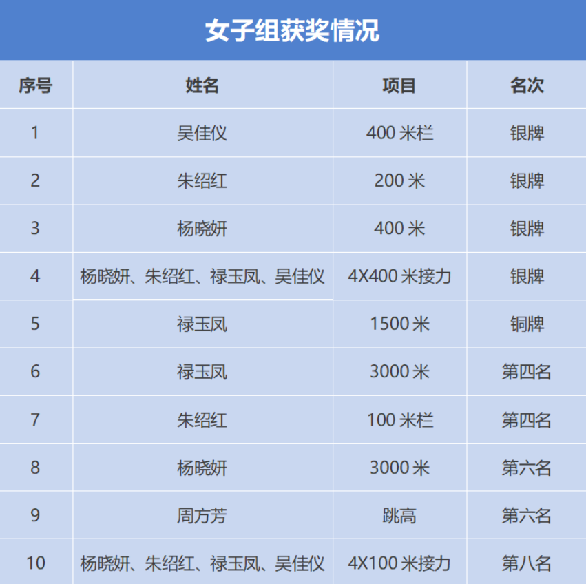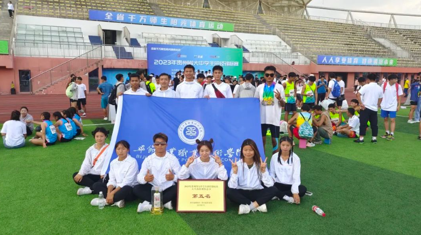 在2023年貴州省大中學(xué)生田徑錦標(biāo)賽中,我院田徑隊在冉光銘、成熊、衛(wèi)平三位教練員的帶領(lǐng)下頑強拼搏、團結(jié)奮戰(zhàn),圓滿完成了各項賽事,共獲得獎牌10枚,其中金牌1枚、銀牌7枚、銅牌2枚,7人次獲得4-8名,2人達國家二級運動員等級,榮獲團體總分第五名。