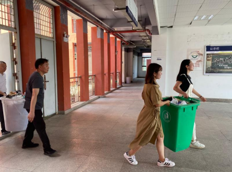 2021年9月2日中午,第三教學(xué)黨支部的黨員教師做好帶頭作用,親自清掃各樓層垃圾滿溢的垃圾桶,和學(xué)生一起到垃圾回收點倒垃圾。