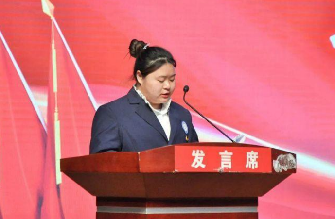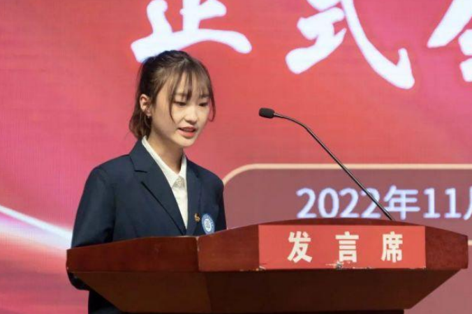 (學(xué)生代表大會(huì)總監(jiān)票人譚悅宣布新一屆學(xué)生會(huì)主席團(tuán)成員、學(xué)生會(huì)委員會(huì)委員名單)