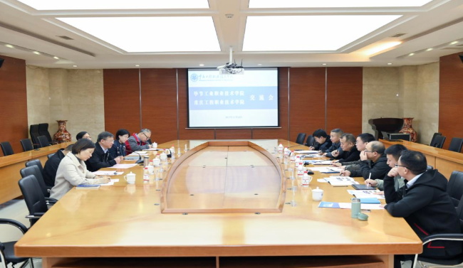 2023年11月14日,學(xué)院黨委副書記、院長邱國援,副院長吳家文帶隊赴國家示范性高等職業(yè)院校、國家優(yōu)質(zhì)??聘叩嚷殬I(yè)院校、中國特色高水平高職學(xué)校和專業(yè)建設(shè)計劃建設(shè)單位重慶工程職業(yè)技術(shù)學(xué)院進行考察交流。重慶工程職業(yè)技術(shù)學(xué)院院長張進、副院長楊智勇及相關(guān)部門負責(zé)人熱情接待并進行了座談交流。