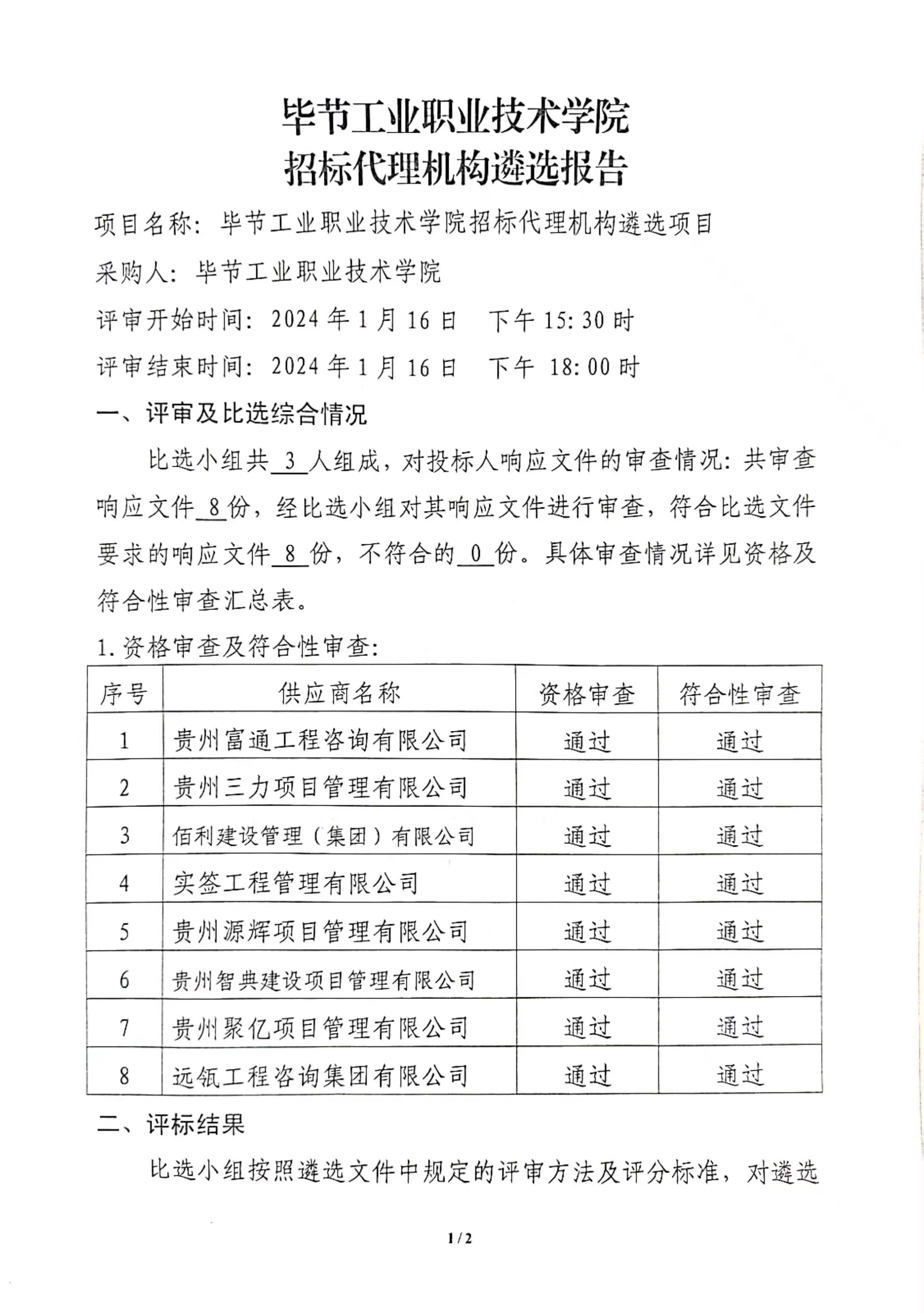 畢節(jié)工業(yè)職業(yè)技術(shù)學(xué)院招標(biāo)代理機(jī)構(gòu)遴選報(bào)告