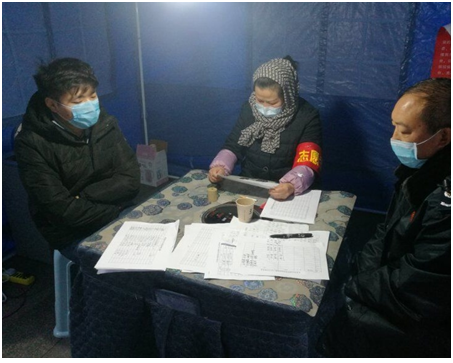 (圖2:公共教學(xué)部楊興老師正在桂花社區(qū)金水岸點登記來往人員信息)