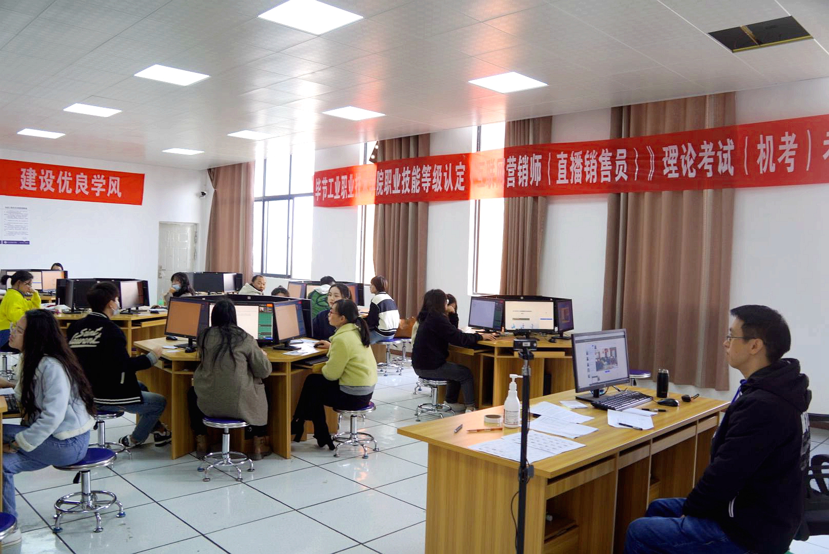 為了促進(jìn)我院“雙師型”隊伍建設(shè),提升教師技能成長,弘揚工匠精神,經(jīng)貴州省職業(yè)技能鑒定指導(dǎo)中心批準(zhǔn),我院2023年第二批職業(yè)技能等級認(rèn)定考試--《直播銷售員》(三、四級)考試工作圓滿完成。