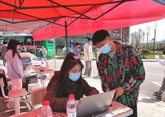數(shù)名志愿者堅(jiān)守在校園各個(gè)點(diǎn)位