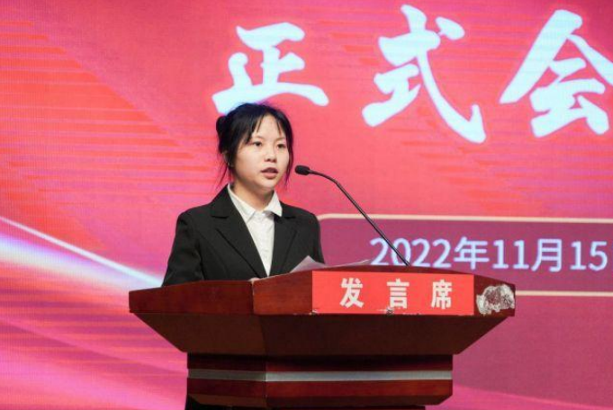 (學(xué)生代表大會(huì)總監(jiān)票人譚悅宣布新一屆學(xué)生會(huì)主席團(tuán)成員、學(xué)生會(huì)委員會(huì)委員名單)