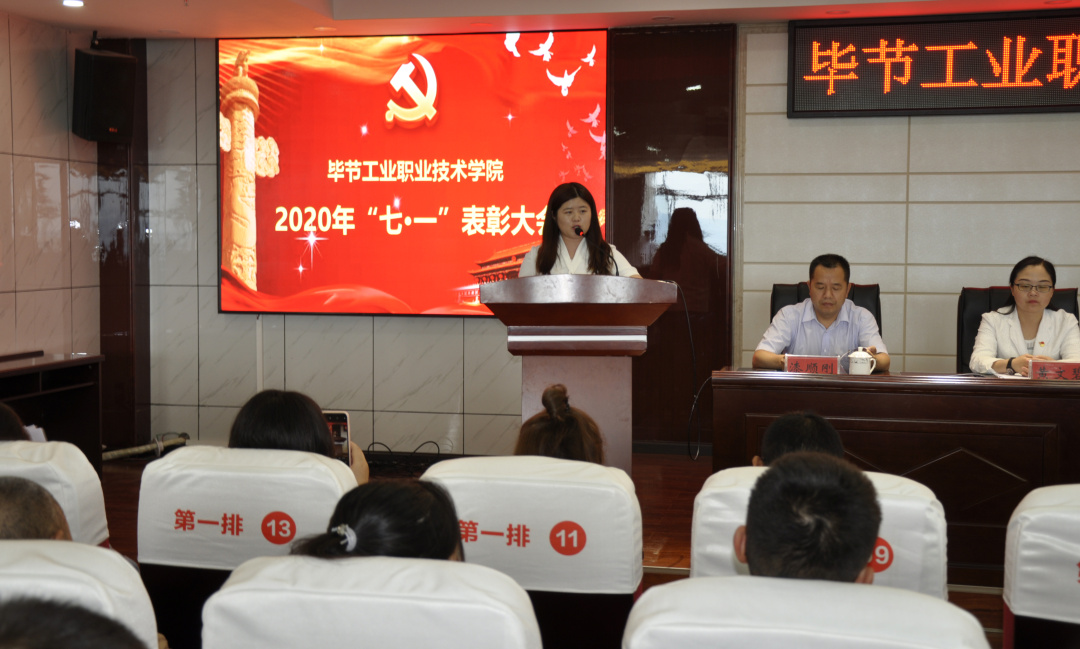 大會(huì)開(kāi)始,全體起立,奏唱國(guó)歌。李涌首先代表畢節(jié)工業(yè)職業(yè)技術(shù)學(xué)院黨委向全體黨員師生致以節(jié)日的問(wèn)候,向受表彰的優(yōu)秀共產(chǎn)黨員和優(yōu)秀黨務(wù)工作者表示熱烈的祝賀和崇高的敬意。并希望受表彰的同志珍惜榮譽(yù)、發(fā)揚(yáng)成績(jī),為不斷鞏固和推動(dòng)學(xué)院發(fā)展再立新功,切實(shí)為穩(wěn)步推進(jìn)工職院各項(xiàng)工作貢獻(xiàn)力量。