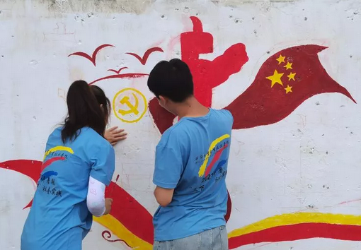 在為期10天的“三下鄉(xiāng)”社會(huì)實(shí)踐中,實(shí)踐隊(duì)員們把黨史學(xué)習(xí)教育帶到了田間地頭家中墻上。實(shí)踐隊(duì)員們走進(jìn)田間地頭,和當(dāng)?shù)剜l(xiāng)親們一起學(xué)習(xí)交流黨的發(fā)展歷程,到家中聆聽當(dāng)?shù)亍罢稀焙屯宋槔媳?、老黨員講述他們的親身經(jīng)歷和黨的光輝歷程并宣傳黨的政策,與鄉(xiāng)親們一起溝通鄉(xiāng)村振興的意見和建議。同時(shí),實(shí)踐隊(duì)員們還將黨的光輝歷史和黨的政策、生態(tài)文明建設(shè)、鄉(xiāng)村振興、惠農(nóng)政策等用墻繪的方式畫在墻上?!皩?shí)踐隊(duì)員們通過這種樸實(shí)、接地氣、通俗易懂的方式將黨史學(xué)習(xí)教育和黨的政策送到了田間地頭、村民家中,打破了傳統(tǒng)的宣講模式,增強(qiáng)了廣大村民振興鄉(xiāng)村的信心。”石丫村駐村書記明正興說。